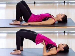 - Se debe elevar la pelvis suavemente al mismo tiempo que se contrae el Los apoyos claves para no perder el equilibrio serán los pies y la parte superior de la espalda.